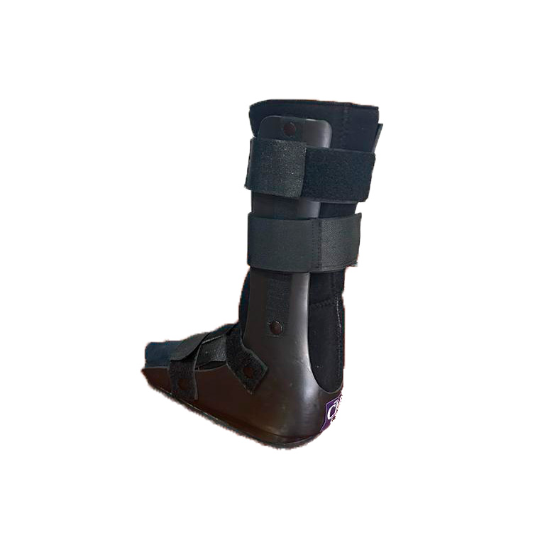 Inmovilizador de pierna, tobillo y pie que permite la rehabilitación ambulatoria fijando el tobillo a 90º.Compuesto de una bota inyectada en Copolimeros, base de goma antideslizante, con apertura posterior en pierna, acolchado en su interior con ajuste anterior de 4 velcros.