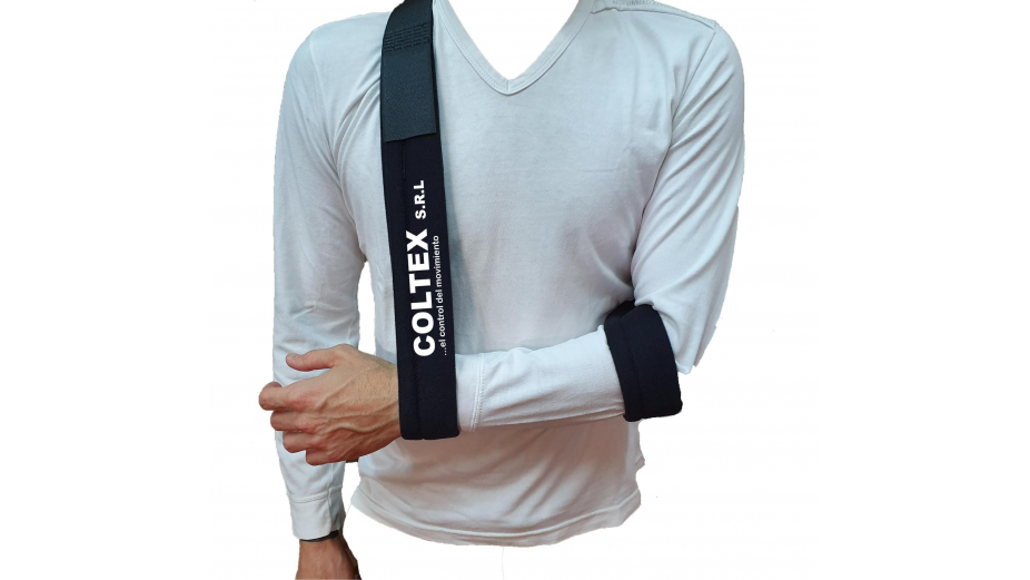 Soporte para sosten del antebrazo confeccionado en galón forrado en tela velour bondeada en espuma de poliuretano de 8mm de espesor, con sistema de ajuste de velcros en Y que permiten regular el largo del mismo de forma rápida y sencilla.